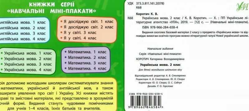 Навчальні міні-плакати Українська мова 2 клас НУШ Авт: Коротич К.В. Вид-во: УЛА 24659