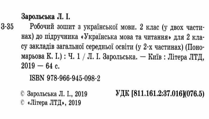 Українська мова 2 клас Робочий зошит до підручника Пономарьової К. Частина 1 НУШ Зарольська Л. Літера
