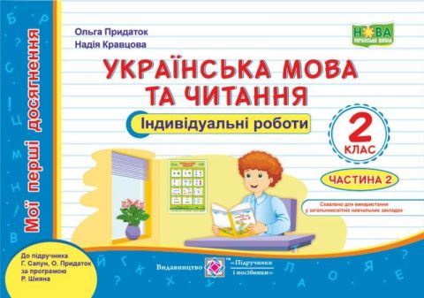 Індивідуальні роботи Українська мова та читання Мої перші досягнення 2 клас Частина 2 НУШ До підручника Г. Сапун О.Придаток Авт: Придаток О. Кравцова Н. Вид-во: Підручники і посібники 32495