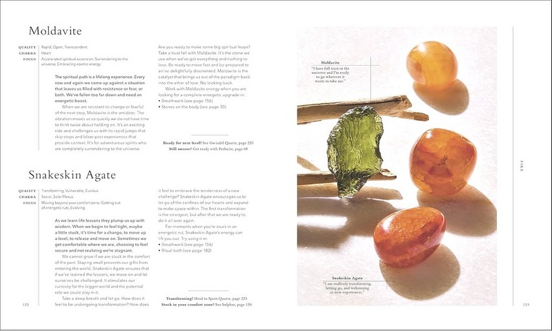 -Feature spreads show how the energetic properties of crystals can enhance wellness practices such as yoga, meditation, bathing, massage, breathwork, and reiki to address specific needs and enrich life.
