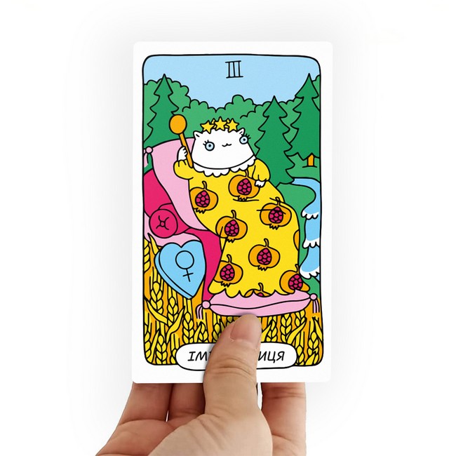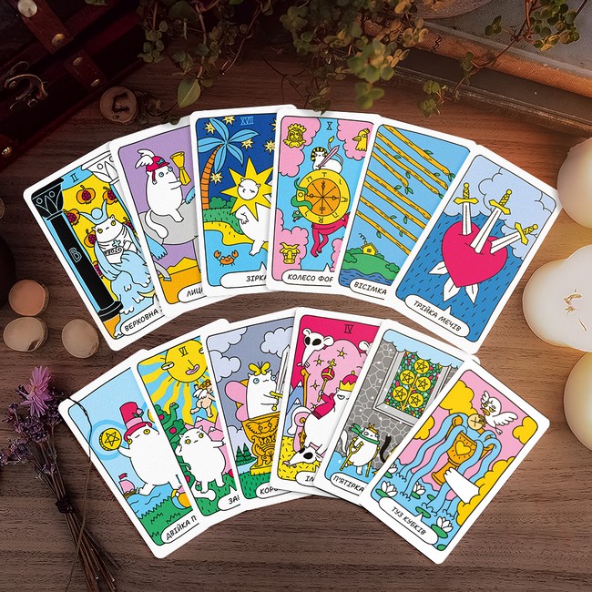 Яскраві кольори, прикольні зображення та гарна якість — це коротко про карти «Котяче таро».
