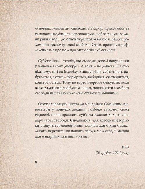 Книга пропонує пройти шляхами Дивосвіту – простору, де традиція поєднується з особистими сенсами, а роздуми стають картами внутрішніх пошуків, і допомагає осмислити власне місце у світі. .