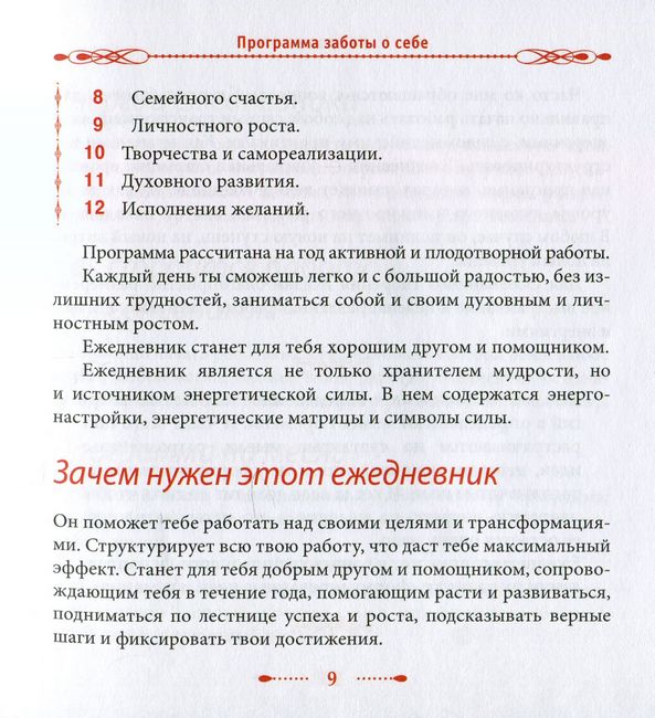 Уникальные энергетические послания недели, аффирмации трансформации, мандалы месяца для медитации и контурные мандалы для раскрашивания, разделы для записи уроков жизни, своих идей и инструментов для духовной работы - все это поможет вам воплотить мечты и цели в реальность!