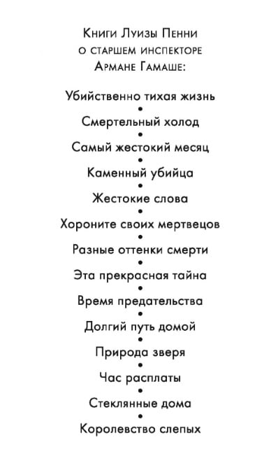 Роман «Стеклянные дома» продолжает серию расследований старшего инспектора Армана Гамаша. Этот обаятельный персонаж создан пером Луизы Пенни, единственного в мире пятикратного лауреата премии Агаты Кристи.